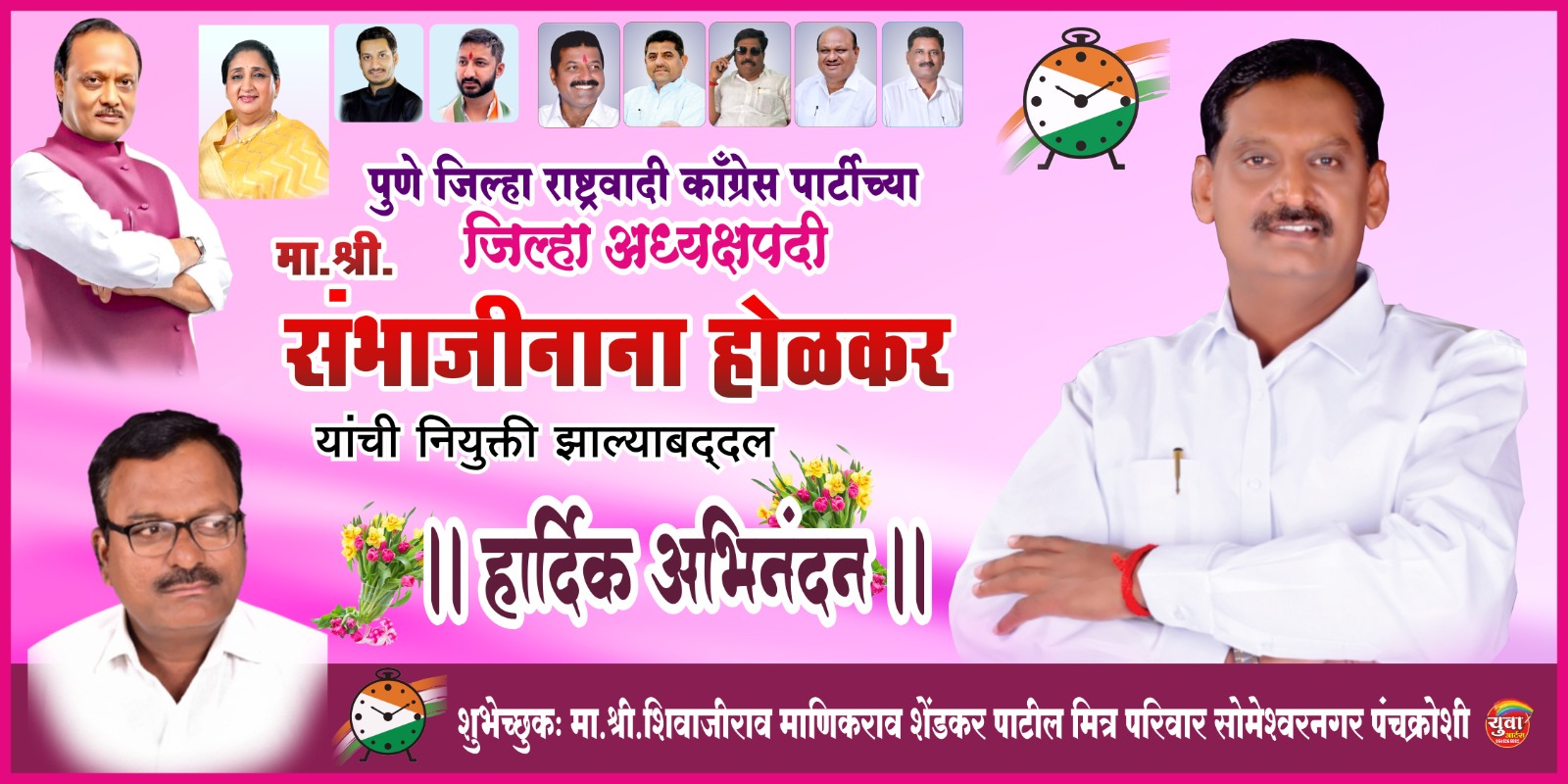 राष्ट्रवादी काँग्रेस पक्षाच्या पुणे जिल्हाध्यक्षपदी संभाजी होळकर यांची नियुक्ती करण्यात आली आहे. पक्षाच्या वरिष्ठ नेतृत्वाने त्यांच्यावर ही महत्त्वाची जबाबदारी सोपविल्याने पुणे जिल्ह्यातील राष्ट्रवादी काँग्रेसच्या कार्यकर्त्यांमध्ये उत्साहाचे वातावरण निर्माण झाले आहे. राजकीयदृष्ट्या अत्यंत महत्त्वाच्या मानल्या जाणाऱ्या पुणे जिल्ह्याचे नेतृत्व अनुभवी, संघटनकौशल्य असलेल्या नेत्याकडे सोपविण्यात आल्याने पक्षसंघटना आगामी काळात अधिक बळकट होईल, असा विश्वास व्यक्त केला जात आहे.