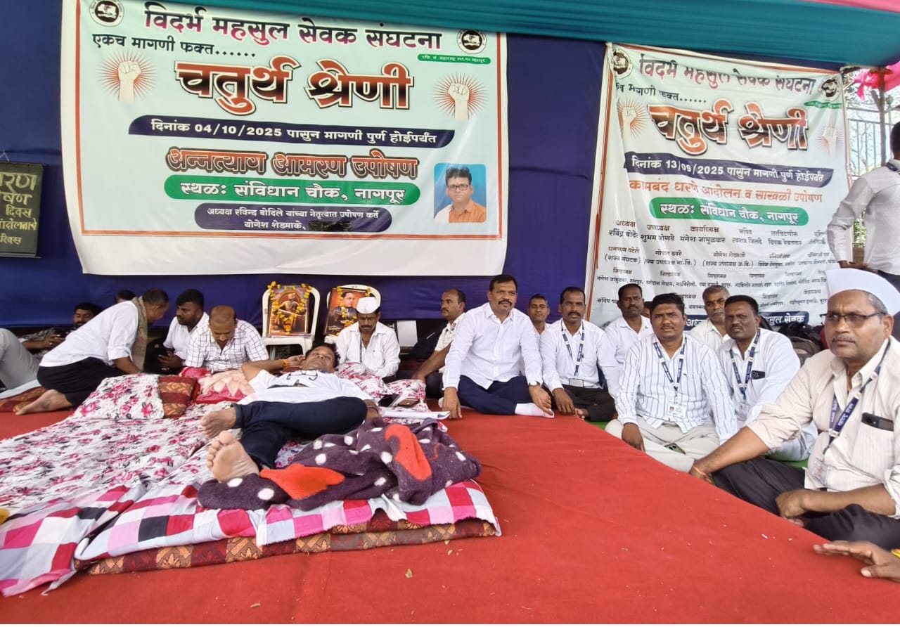प्रतिनिधी – महसूल सेवक पदावर काम करणाऱ्या कर्मचाऱ्यांना शासकीय चतुर्थ वेतन श्रेणीचा दर्जा द्यावा या मागणीसाठी नागपूर येथील संविधान चौक येथे आमरण उपोषण सुरू झाले आहे. या आंदोलनाला पाठिंबा देण्यासाठी बारामती तालुक्यातील सुमारे ३८ महसूल सेवक सहभागी झाले आहेत. महसूल सेवकांच्या आंदोलनाची आजपर्यंत शासकीय स्तरावर दखल घेण्यात आलेली नाही. गेल्या ६० वर्षापासून होत असलेली चतुर्थ […]